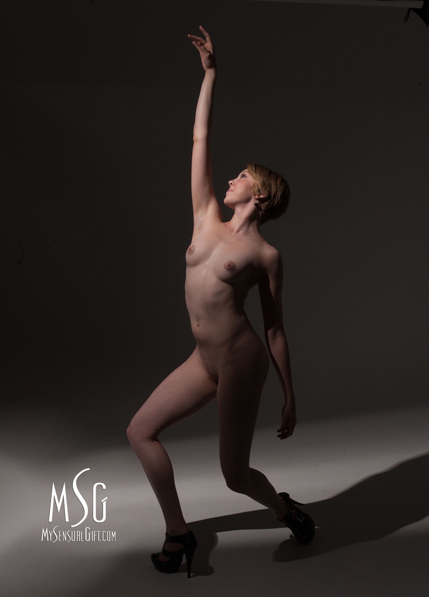 Our main nude photography studio is wonderful for getting the images you truly want. Lucinda and I have many different types of lighting from soft light to very strong theatrical spot lights... giving you a truly innovative nude photography studio look! We also employ a white infinity wall which we augment with large studio strip lights. These strip lights can create some stunning nude portraits. As you've seen above there are many lighting solutions to make you look great in the main nude studio. Most ladies are a bit nervous at first and then truly begin to enjoy the nude photography session! You can be the sexy lady that you are and delight your love immensely with our husband and wife team nude photography service! The studio also has a built-in staircase is great for studio nudes as well.